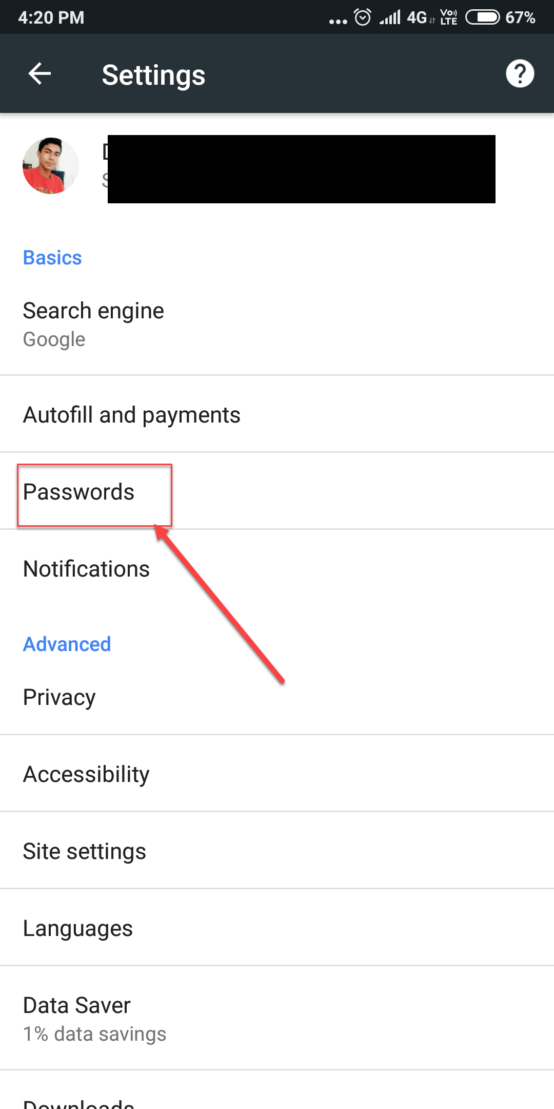 Paso 3: Ver la contraseña guardada en el navegador Chrome en Android