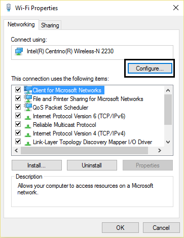 4.Haga clic en Configurar junto al adaptador inalámbrico.