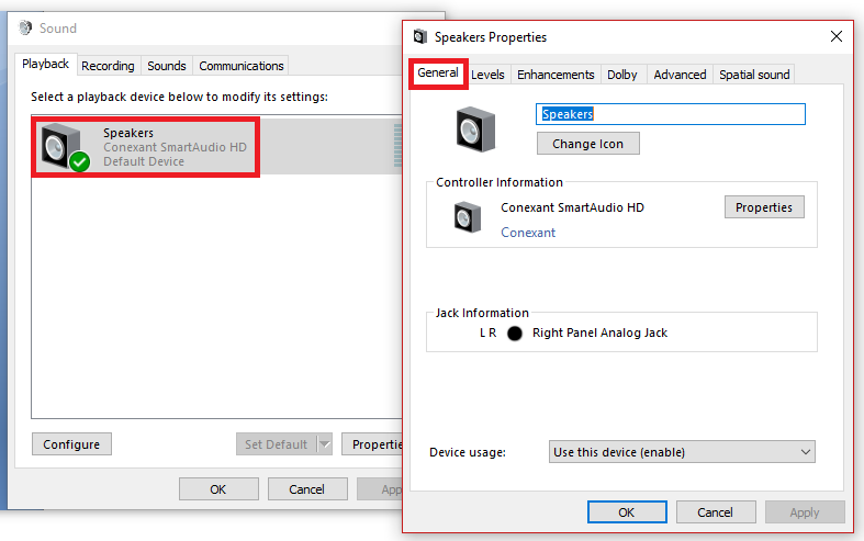 3.Haga doble clic en Altavoces bajo la pestaña de Reproducción. Por defecto, verás la ventana emergente en la pestaña General, sólo tienes que cambiar a la pestaña «Niveles».