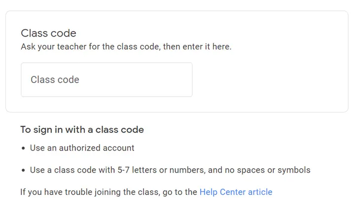 - Luego, debe ingresar un código de clase proporcionado por su maestro.