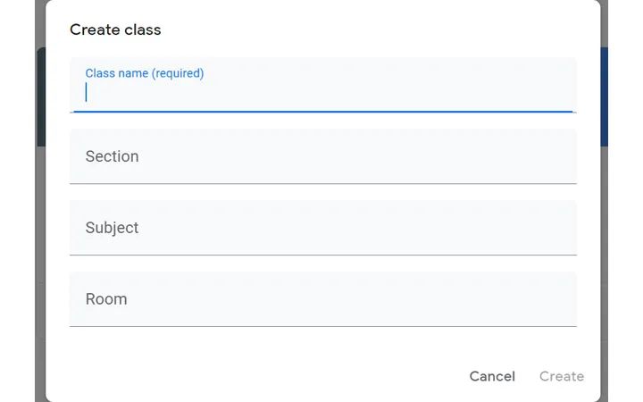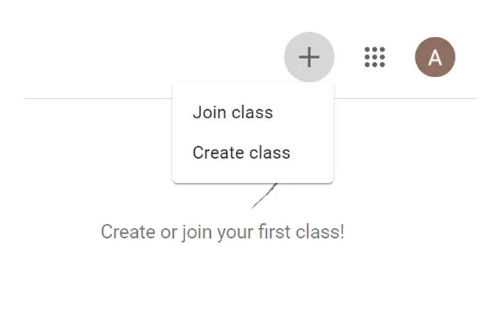 - En la página de bienvenida del aula de Google, haga clic en el ícono más y luego seleccione la opción ‘Crear’.