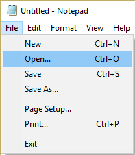 4.Ahora dentro del bloc de notas haga clic en Archivo y luego seleccione Abrir.