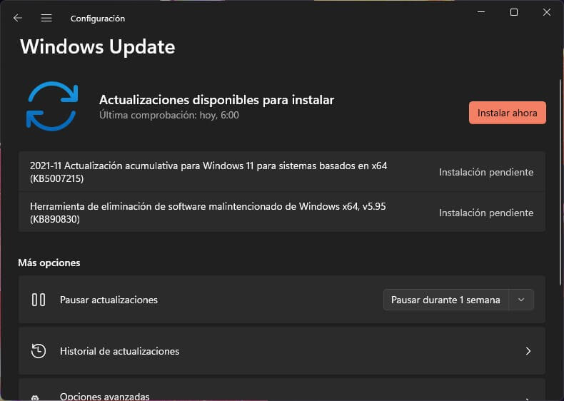 1. Actualizar Windows 11 y descargar los últimos parches de seguridad. Esto ayudará a mejorar el rendimiento y la estabilidad del sistema.