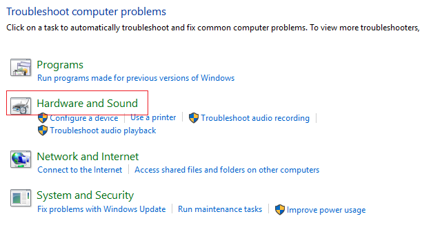 Método 3: Ejecutar el solucionador de problemas del hardware