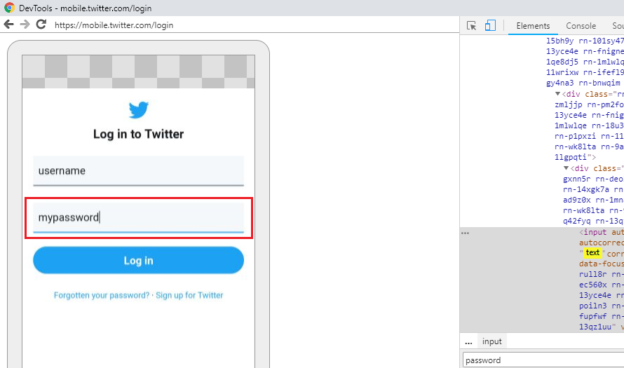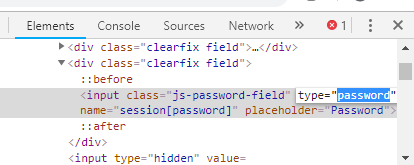 8.Haga doble clic en type=»password» y luego escriba $0027text$0027 en el lugar de $0027password$0027. Esto cambiará el tipo de campo de entrada y podrás ver tu contraseña.