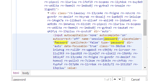 7.Se abrirá la ventana de herramientas de desarrollo. Ahora, como el campo de la contraseña no está resaltado en este método, tendrás que buscarlo manualmente o pulsar Ctrl+F y escribir $0027contraseña$0027 para localizarlo.