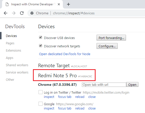 5.En esta página, podrá ver su dispositivo Android y los detalles de las pestañas abiertas.