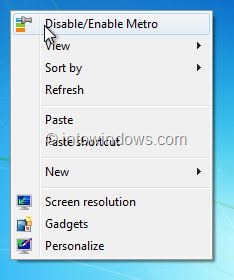 Siga los pasos que se indican a continuación para agregar fácilmente la opción Desactivar/Habilitar Metro al menú contextual del escritorio. Gracias a «Shawn» de los EightForums por crear el guión.